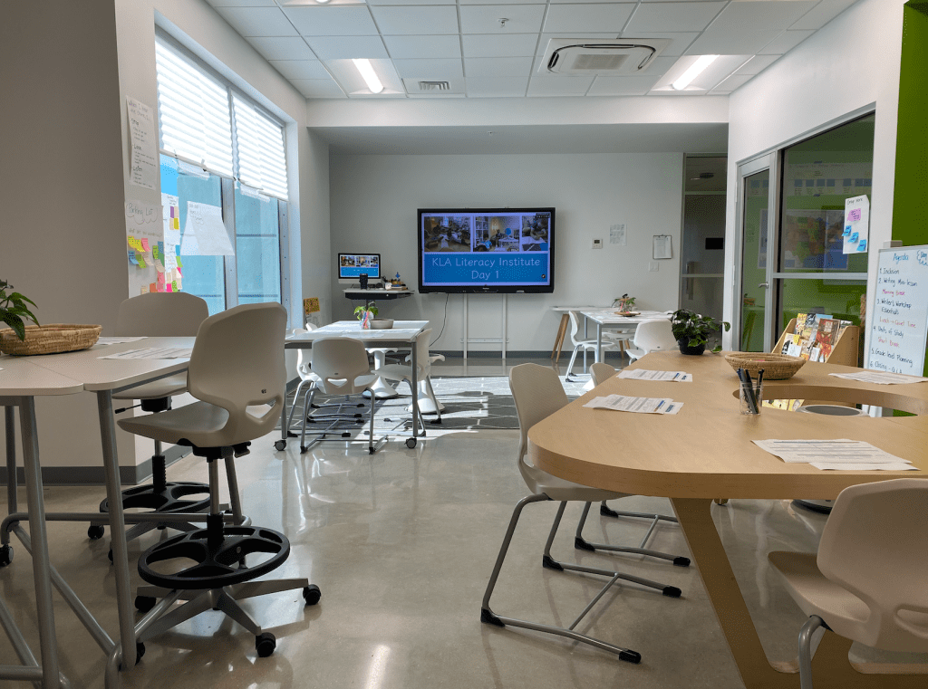Large windows let in plenty of natural light, creating an open and refreshing mood. I’ve arranged the furniture several times, trying to find the best flow for small groups. I know I mentally rehearse my movements around the space to ensure I connect with every teacher sitting here.